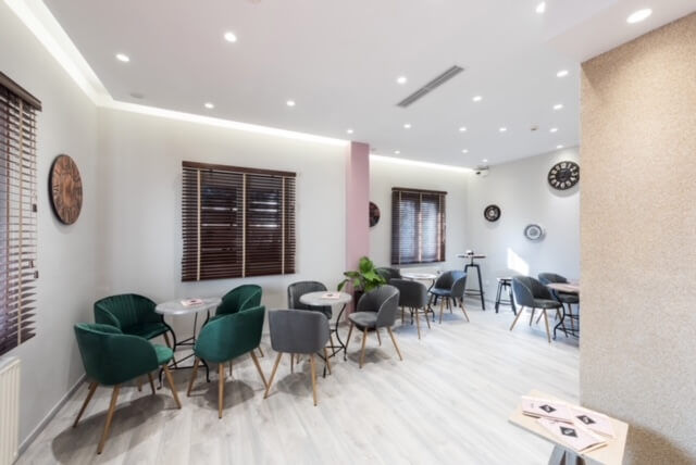 We welcome you to the all day café-bar Di Piu, which you find just outside the center of Thessaloniki. Our event space has an outdoor area as well as an indoor area. The outdoor space is 400 square meters and has a capacity of about 180 people and the interior is divided into three, very nicely decorated, floors with a capacity of about 100 people in total. Our space is waiting for you, with its unique decoration, to give a different look to your corporate event or the presentation you want to organize. Contact us for more information!